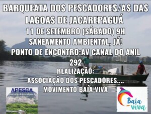Integrantes do Movimento Baía Viva estiveram presentes e o Baía Viva participará da organização e comunicação da Barqueata do Anil, uma ação de protesto a favor da limpeza das lagoas do Complexo Lagunar de Jacarepaguá, agendado para o dia 11 de setembro, sábado, a partir das 9h, com a participação de todos os pescadores da Zona Oeste carioca.