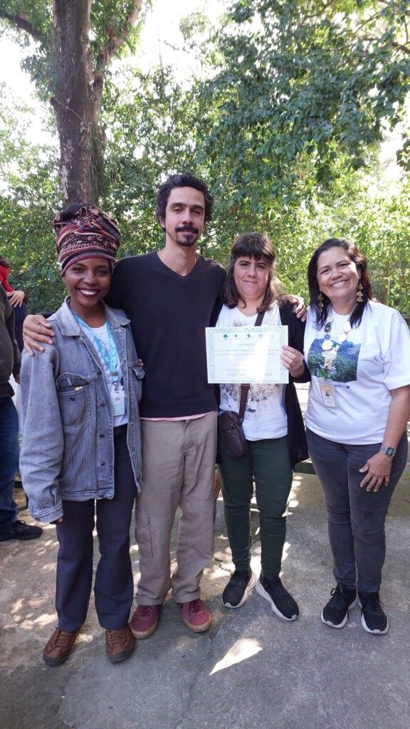 Flavia ingressou no curso através do Baía Viva, participando inicialmente de um mutirão na Aldeia Maracanã. Para ela, a agroecologia vai além da técnica, integrando saberes tradicionais e fortalecendo a luta contra ameaças aos territórios. O curso a fez refletir sobre manejo sustentável, impactos dos agrotóxicos e a importância da alimentação viva, conectando saúde, ecologia e cultura.