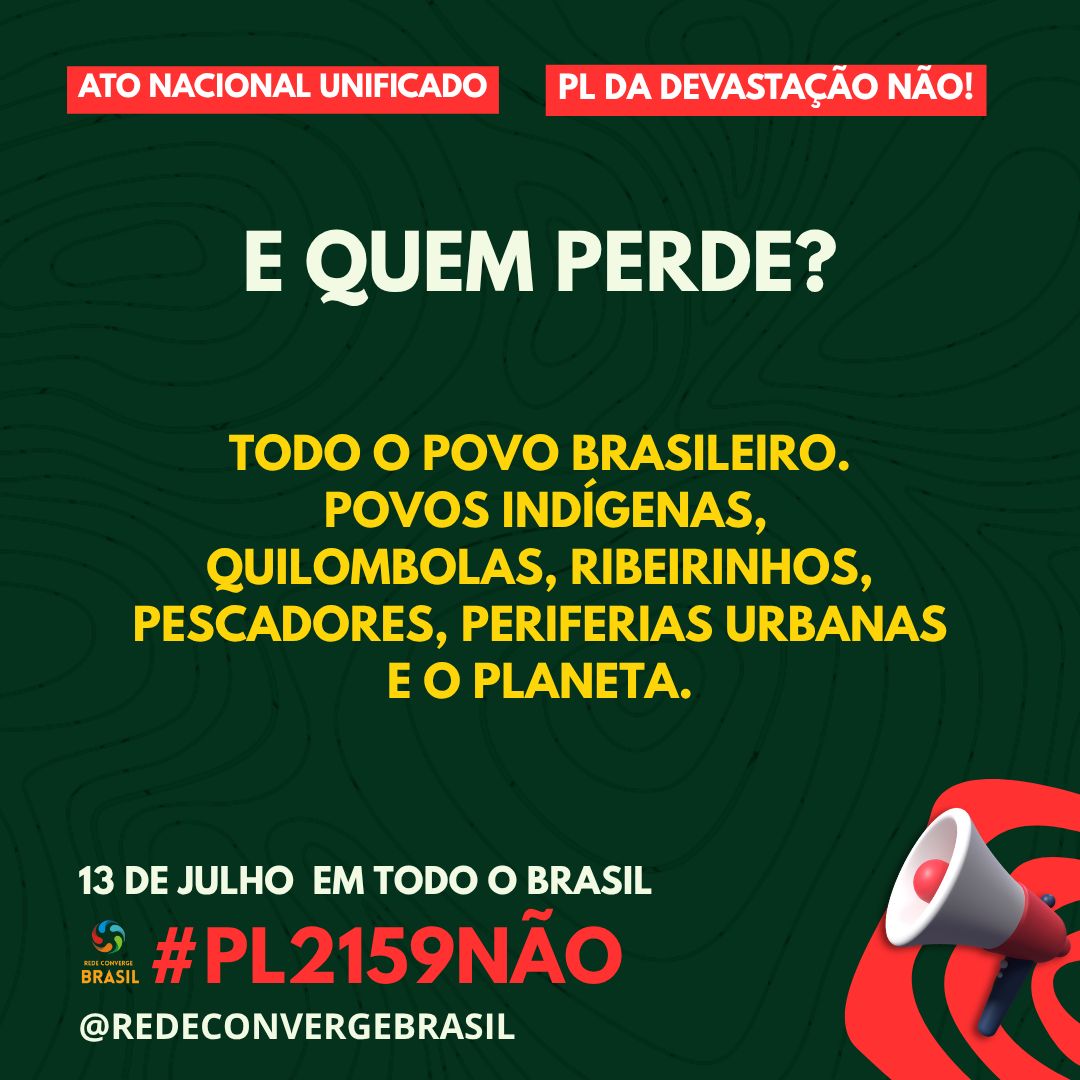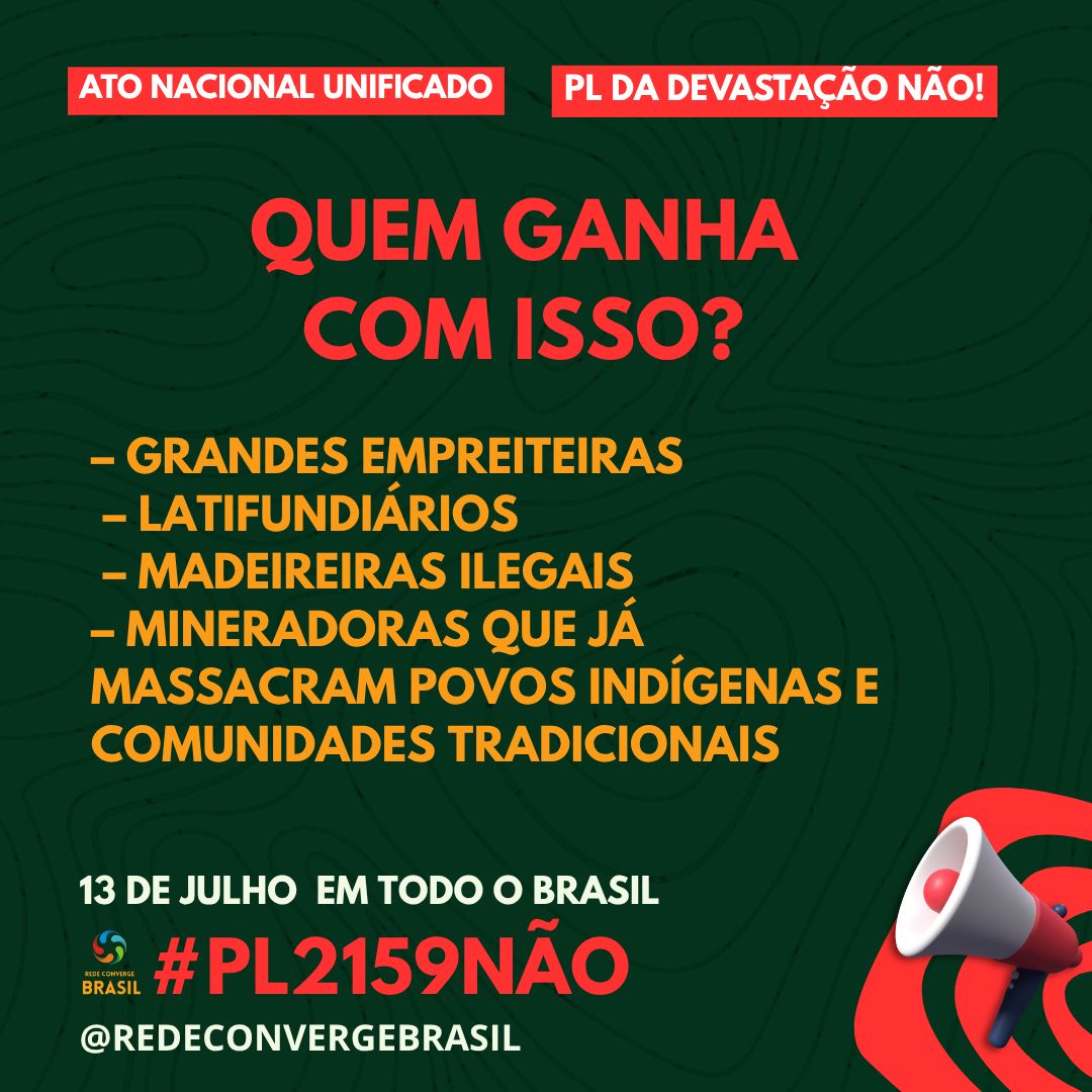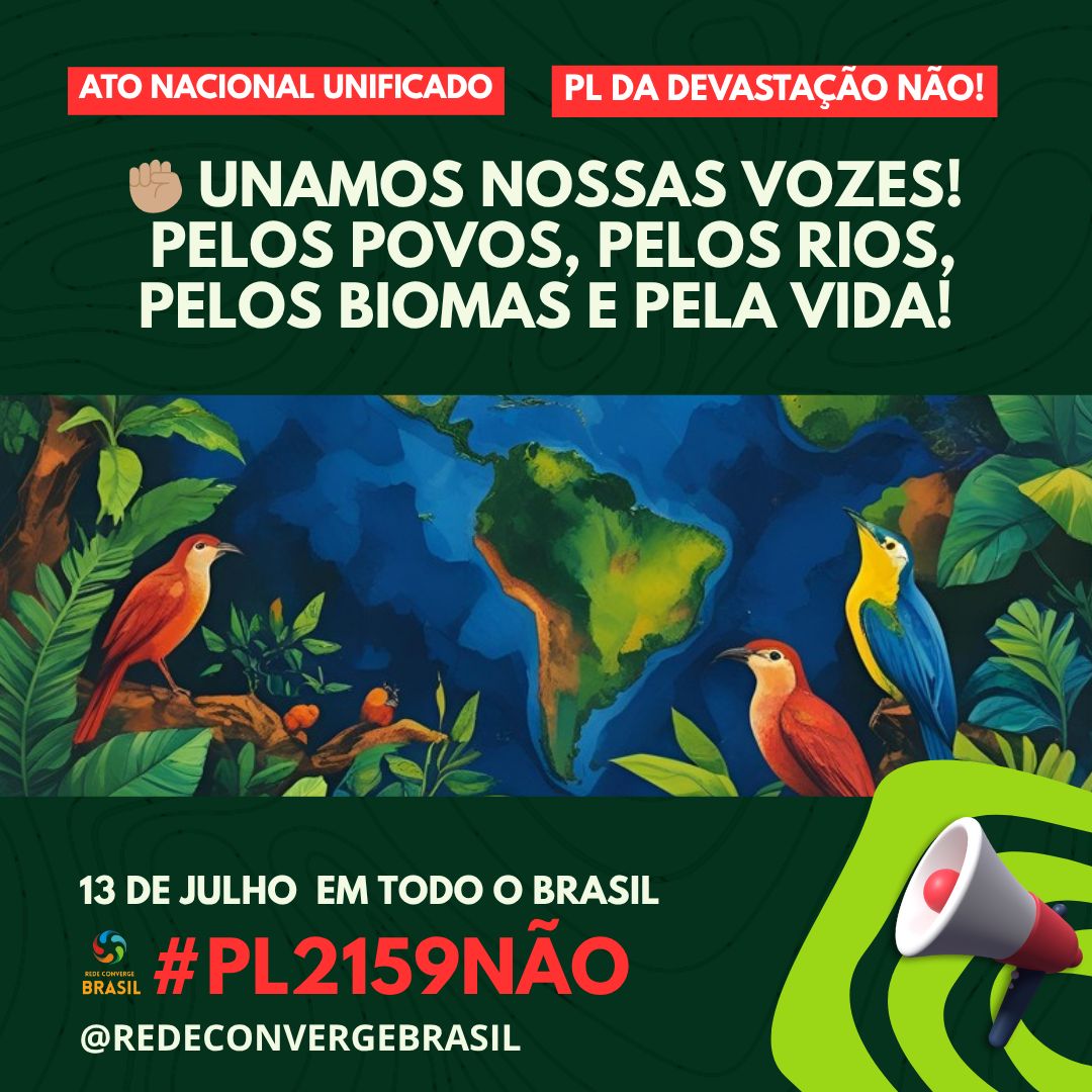 Atos Confirmados Pelo Brasil Contra o PL da Devastação dia 13 de Julho