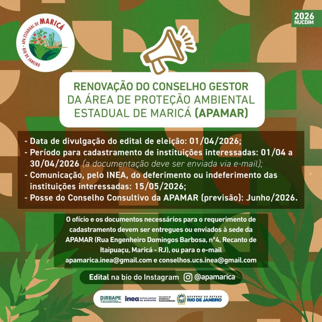 Está aberto o processo de renovação do Conselho Consultivo da Área de Proteção Ambiental Estadual de Maricá (APAMAR)!