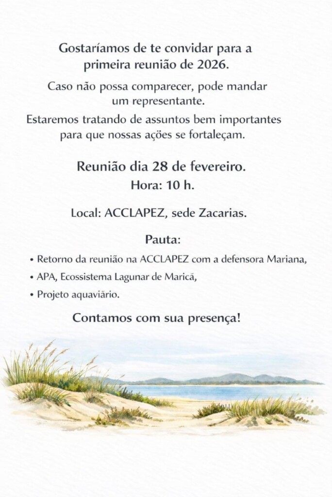 É com senso de urgência e espírito de colaboração que os convidamos para a primeira reunião da ACCLAPEZ em 2026.