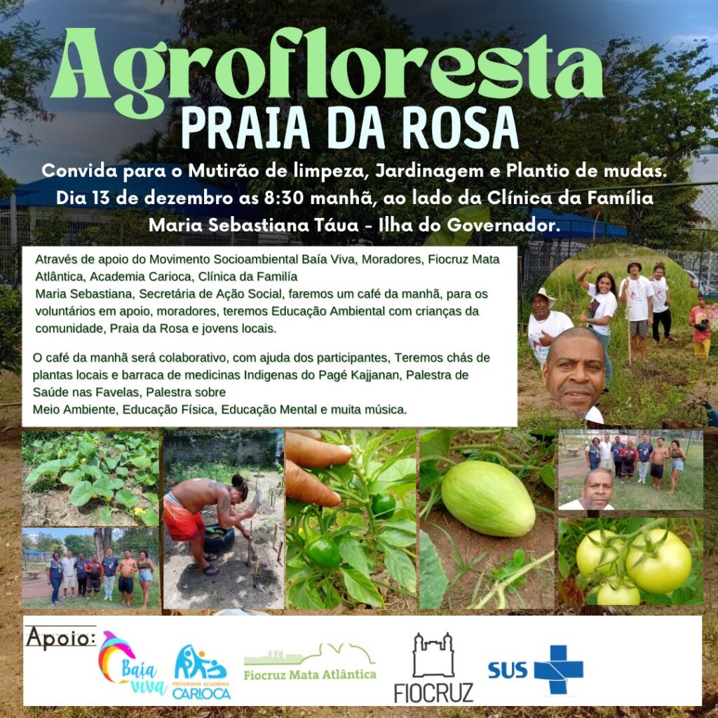 A comunidade fará um protesto ecológico neste sábado, dia 13/12/2025, durante o Mutirão da Agrofloresta Praia da Rosa, Ilha do Governador. Venha participar e traga seus cartazes e familiares pra abraçarmos juntos este importante manguezal da Baía de Guanabara.