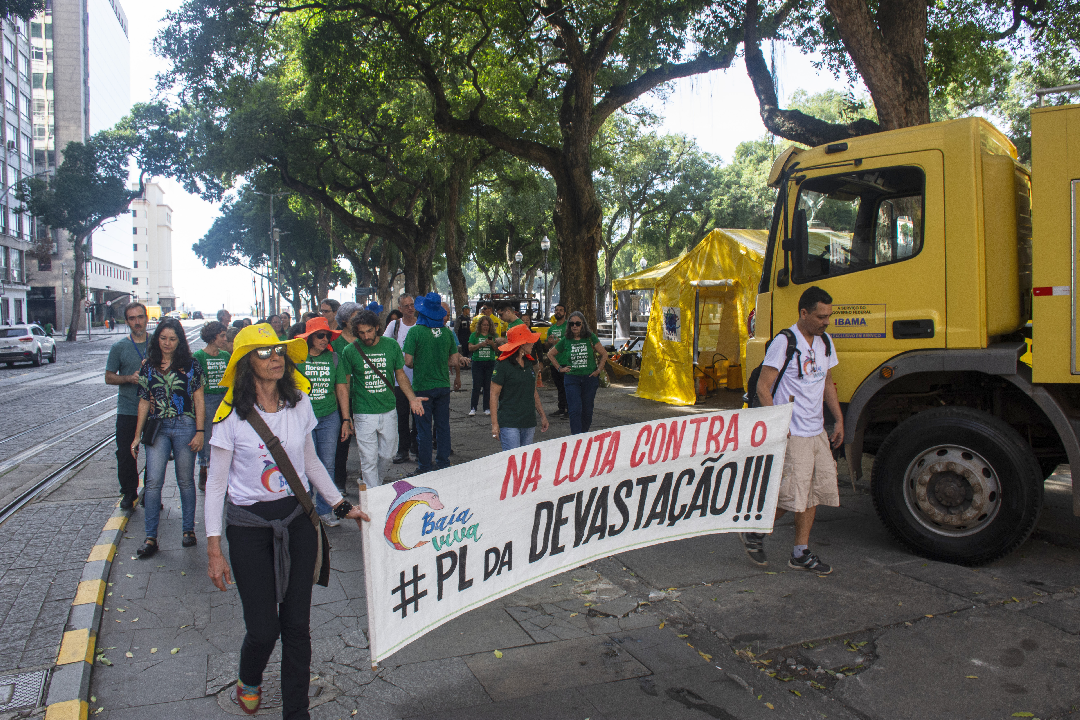 No dia 5 de junho, às 9:30h, em comemoração do dia do Meio ambiente, ativistas e colaboradores do Baía Viva realizaram um evento na porta da ABI, com música e exposição de artes do artista Guil Baptista, e depois juntos caminharam em protesto contra a PL 2159, a PL da Devastação, até à sede do Ibama.