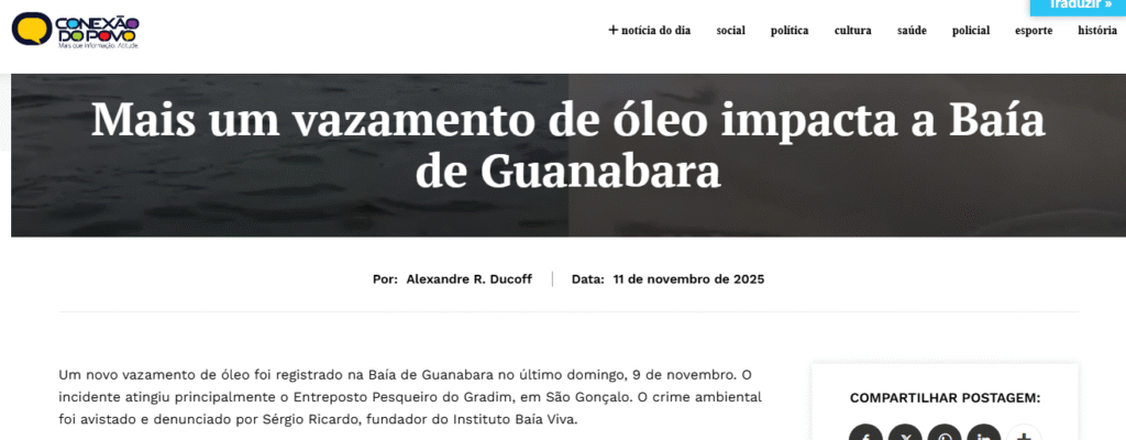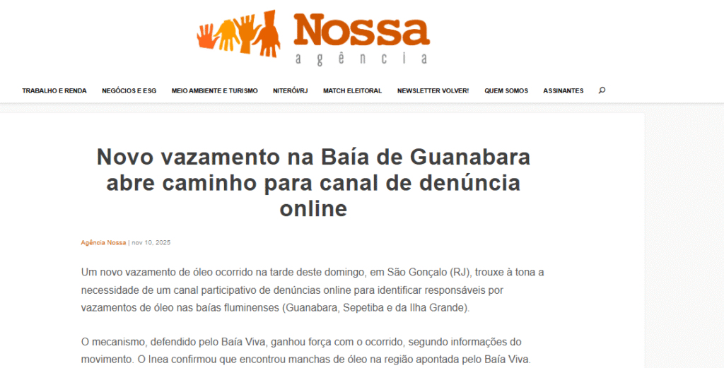 13 de outubro de 2025. Matéria do Chico Regueira sobre cemitério das embarcações, campanha de 30 anos do movimento Baía Viva.