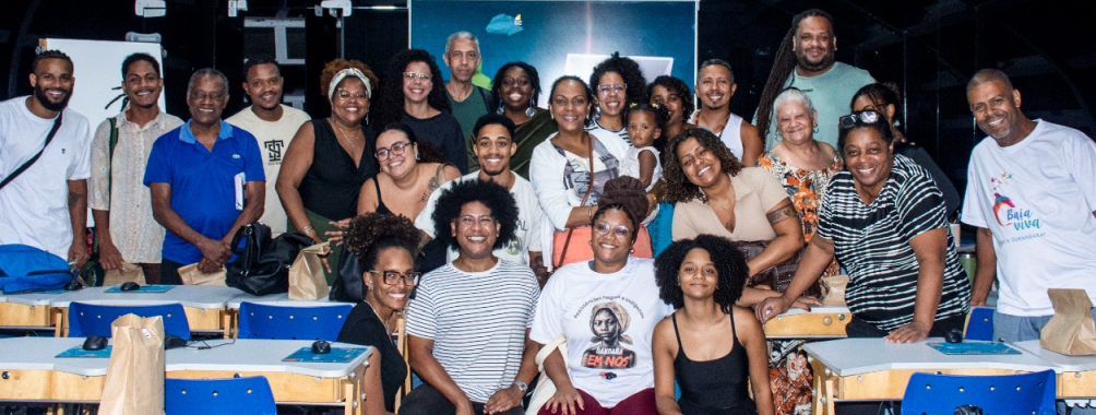 Capacitação edital Sementes – Ghetto. Última aula do ano 2025 da capacitação de projetos. É um aprendizado sobre métodos e formatos de promoção e organização de projetos, no edital que o Baía Viva alcançou, entre outros, em 2025. Claúdio Fagundes presente na foto, representando o BV.