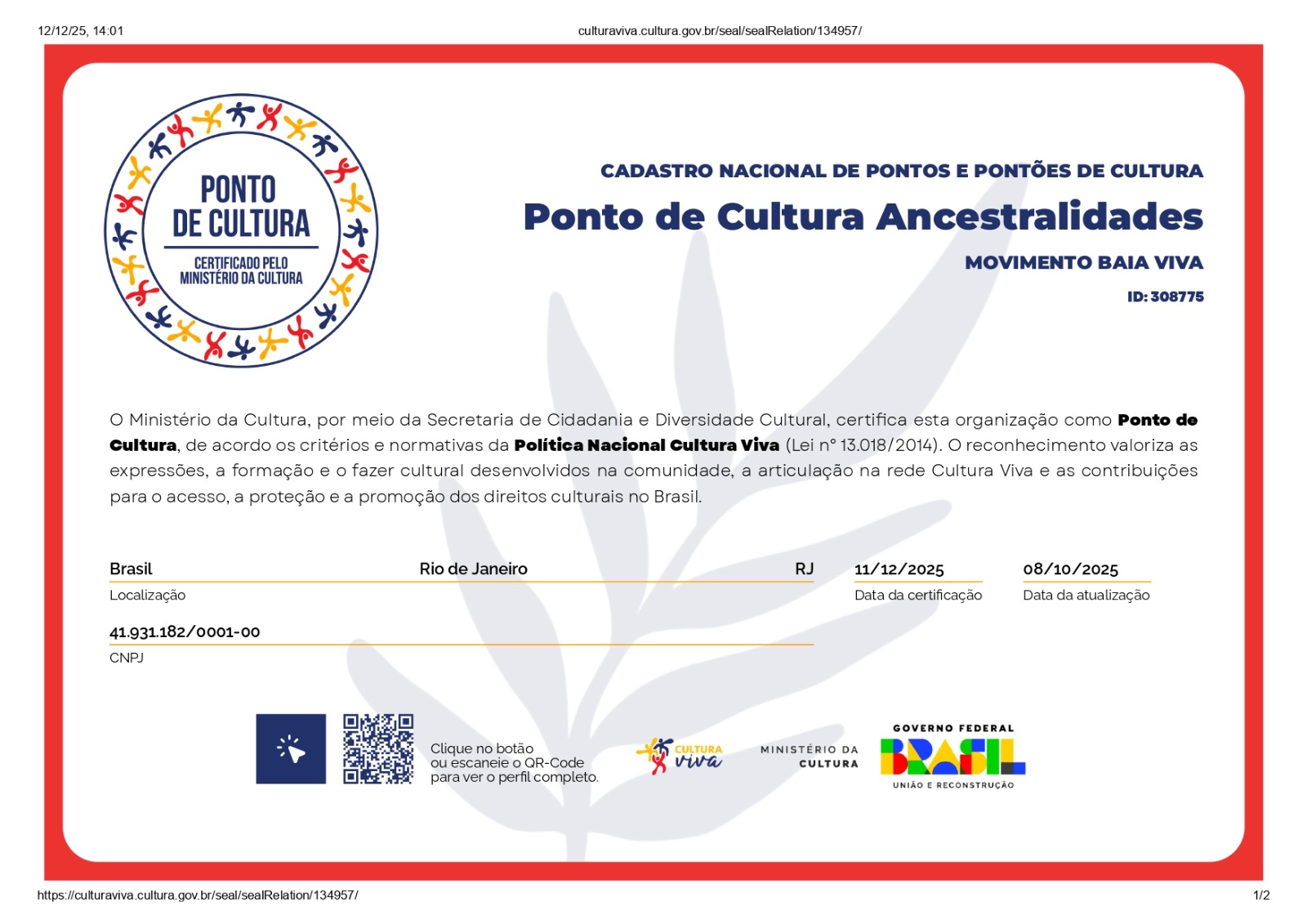 O Movimento Baía Viva tem o prazer de anunciar que fomos habilitados como Ponto de Cultura e agora fazemos parte da Política