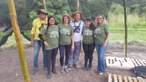 Ainda neste mutirão, com 20 participantes, aconteceu a visita dos Brigadistas e dos parceiros à Aldeia Guyrá Ambá – “Morada dos Pássaros” do Pajé Eugênio Ocampo, que emigrou em dezembro passado da Província de Missiones, na Argentina, com sua família para a Aldeia Guarani Mbyá de Mata Verde Bonita, em Maricá (RJ), onde estão atualmente vivendo 79 membros da sua família.