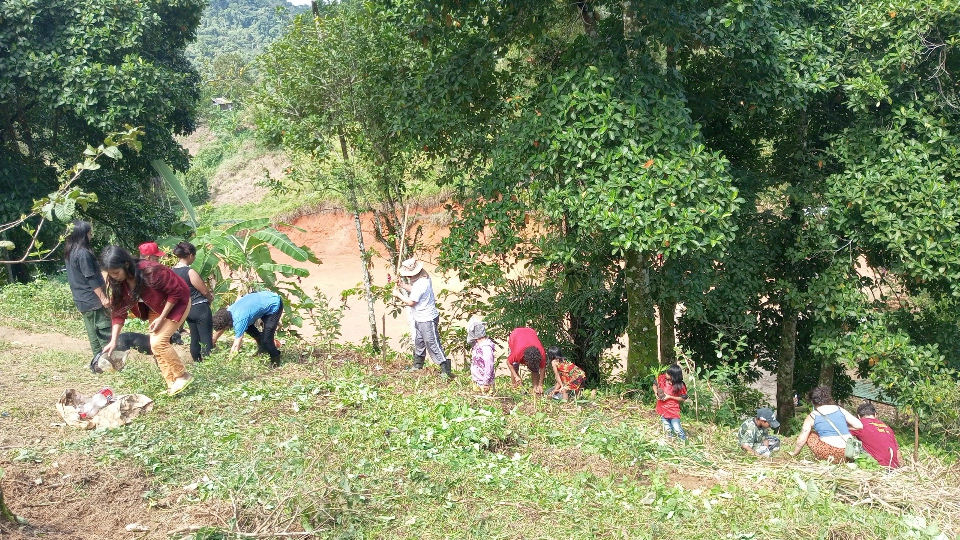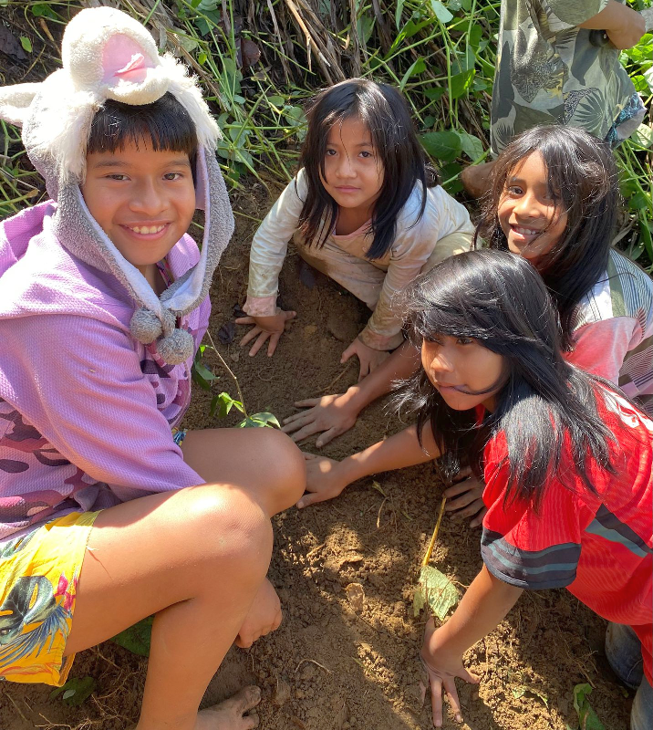 Nesse dia, realizou-se a capina e manutenção das áreas ao redor do Viveiro da Mata Atlântica e atrás da Opy (Casa de Reza), coleta de resíduos (lixo) e plantio de mudas de espécies nativas, alimentícias e medicinais, como boldo, erva cidreira, goiaba, jenipapo, juçara, ingá e muitas outras, com as crianças se divertindo e aproveitando o sábado de mão na terra!