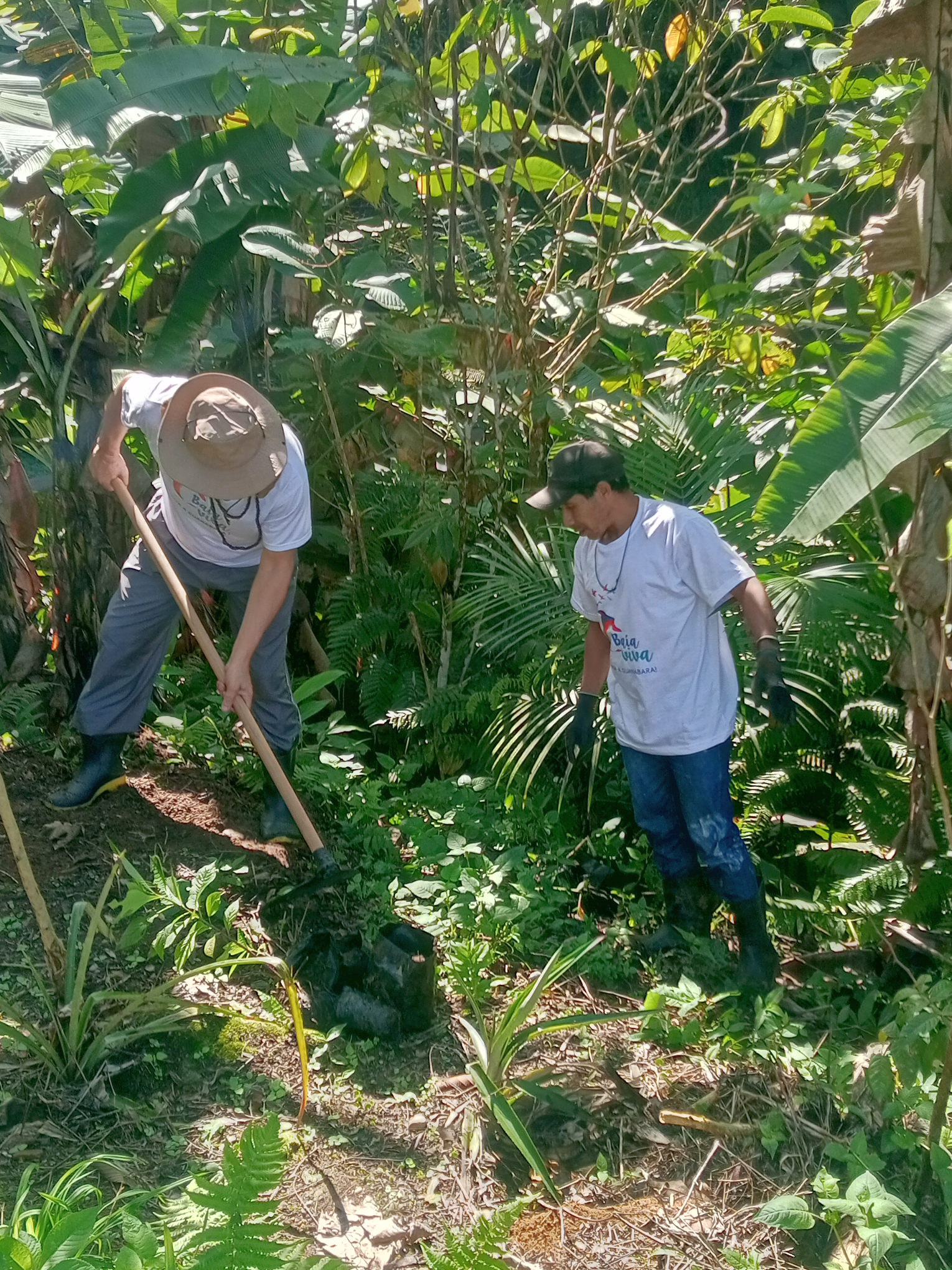 Com a colaboração de parceiros, o Viveiro da Mata Atlântica localizado na entrada da Aldeia Sapukai recebeu 500 mudas de banana prata e d’água doadas pela Secretaria Municipal de Agricultura da Prefeitura de Angra dos Reis; 200 mudas da CEDAE (programa Replantando Vida) e 200 espécies da Fiocruz Mata Atlântica. Além disso, contamos com o apoio técnico da EMATER-Rio que trouxe orientações sobre técnicas de plantios, como parte das atividades de Assistência Técnica Rural (ATER).